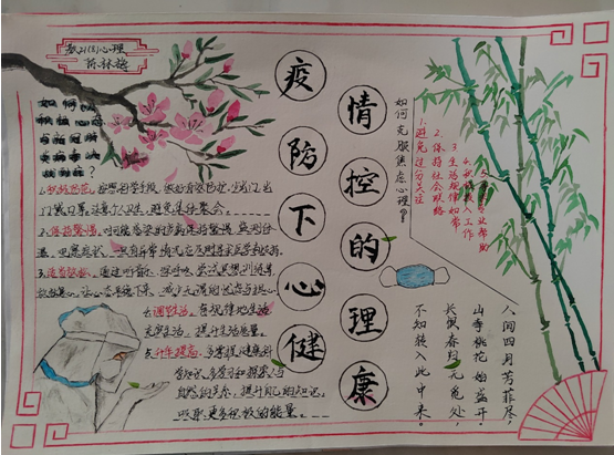 虽已春暖花开,但在疫情形势下校园长时间的封闭管理可能会带来焦虑、压抑等情绪,教工第三党支部及心理学系在配合公司疫情防控的同时,在“心理防疫”这个特殊战场上,充分运用专业优势,组织应用心理学专业员工开展了主题为“心理抗疫· 疫起同行—我为盐师出谋划策”系列活动,从多方面普及“心理防疫”知识,包括手抄报、海报制作、动画制作、PPT等,为抗击疫情贡献专业力量,让大家保持积极健康的心态。