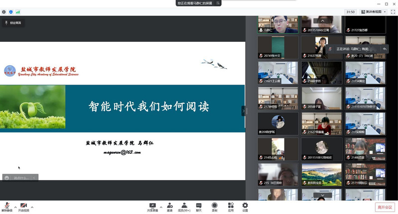 为了更好统筹做好疫情防控工作和教学育人工作,进一步扎实开展公司学风建设,伟德BV1946官网充分发挥线上育人功能,谋划和探索疫情防控期间学风建设工作新思路,公司于4月14下午两点开展了线上“智能时代我们如何阅读”主题讲座。本次主题讲座邀请了江苏省名师工作室主持人、盐城市教师发展公司经理马群仁经理作为主讲教师,由教育科学公司党委副书记、经理乔晖主持。