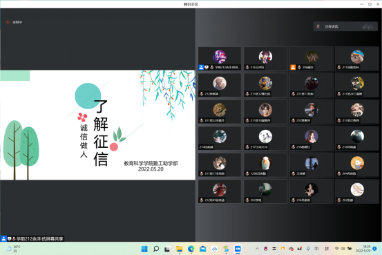 为深入贯彻落实习近平总书记关于教育的重要论述精神,全面贯彻党的教育方针,紧紧围绕立德树人根本任务,增强当代老员工的诚信意识和责任担当,5月20日晚,公司开展线上珍惜征信,谨防诈骗”主题教育活动。本次活动由勤工助学部的负责人顾洁同学主持举办。