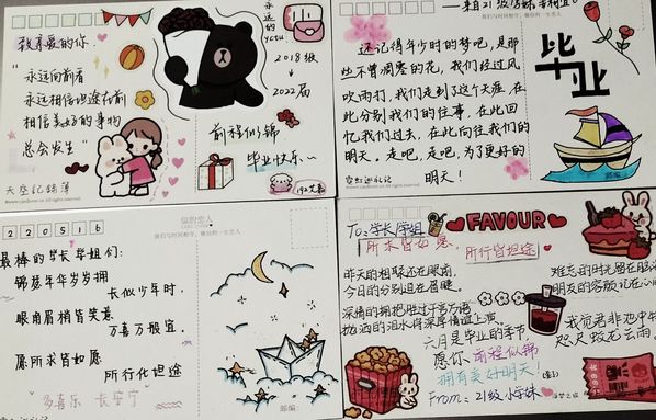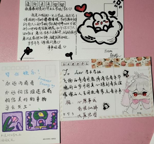此次活动由伟德BV1946官网员工会员工发展部承办,面向伟德BV1946官网全体员工,号召非毕业班员工手绘明信片,写下对毕业生的祝福。此次活动一经发起,伟德BV1946官网学子们踊跃报名,积极参与,用心书写,用情传递,或利用高超的绘画技术,画出青春的模样,画出未来的蓝图,或用文字描绘了母校的美好回忆,定格青春印记。每一张充满青春活力的明信片上,表达着对毕业生们真挚的告别与祝福。每一张洋溢希望气息的明信片被放置在校园的各个角落,让毕业生在校园中重温校园角落的美,感受同学们衷心的祝福。