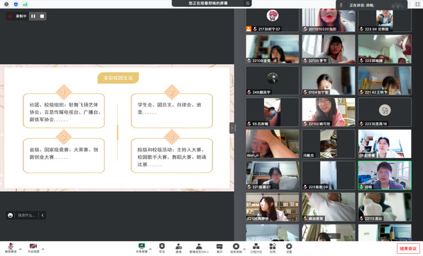 为了解决新生初入大公司园的困惑,2022年9月3日上午,伟德BV1946官网优秀毕业生周海鹏学长,陈馨悦学姐,在腾讯会议为新生们举行学习经验分享会,用自身的成长经验为新生们答疑解惑。