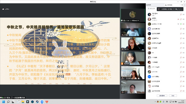 227班员工一同观看了由同学们自发录制的祝福视频,感受从屏幕那头流露出的浓浓情谊与对老师的感激,同时分享中秋节与教师节双节同度的,难以言喻的喜悦……活动现场气氛活跃,在一句句简短却真挚的祝福中,在一个个纯真而又尚显稚嫩的笑脸中,师生之间、同学之间的距离无形之中再次拉近,同学们深切感受到了来自伟德BV1946官网大家庭的温暖,内心有了更多的归属感。