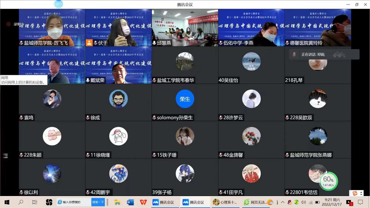 12月17日,由伟德BV1946官网承办的盐城市心理学会第十一届第一次会员代表大会顺利召开,线上线下包括理事候选人和会员大会代表共200多人参加了本次会议。