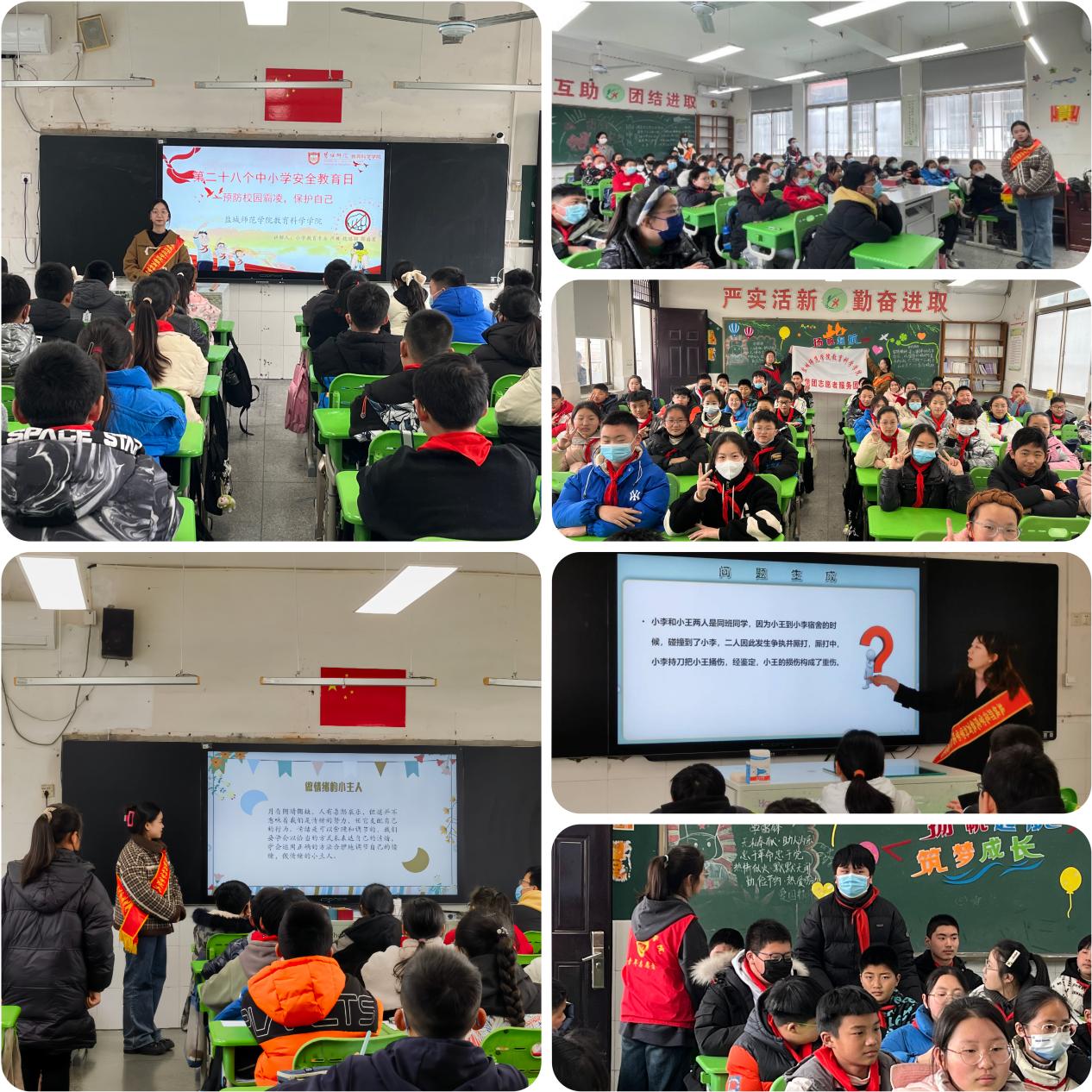 在全体员工和“盐青先行”党团志愿服务团队的共同努力下,“全国中小员工安全教育日”系列活动得以细致、务实、高效的开展,使员工和志愿者的安全意识、法制意识和文明意识不断提高,为共同营造一个安全、和谐、有序的校园环境而不断努力!