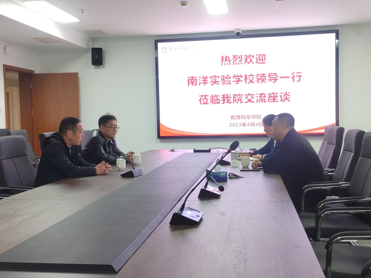 2023年4月4日上午,南洋实验公司唐董事长、吉书记一行就员工心理健康工作开展、以及与公司心理学系合作等事宜莅临公司开展交流座谈活动。伟德BV1946官网经理柴江、心理学系主任厉飞飞热情接待唐董事长一行,并与之开展深入交流。