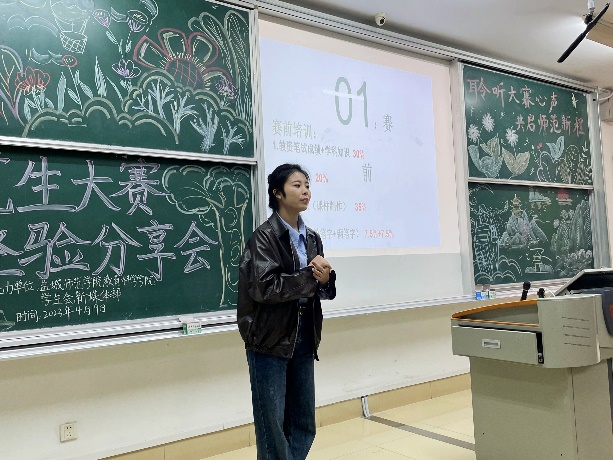 活动结束后,小学教育专业207班的王诗婧同学深受启发,她说到:“学长学姐们的经验分享对我准备师范生大赛有很大的启发。他们句句掷地有声、久久回响,落在我的心坎上,牵动着我对于未来的构想与展望,未来我一定更加努力夯实自己的基本功,向优秀的学长学姐们看齐!