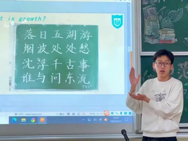 4月17日,小学英语组获得一等奖的顾益生同学以及获得二等奖的詹懿同学进行了经验的交流与分享。在分享过程中,两位同学详细地介绍了大赛的具体内容:分为国考成绩、模拟授课、口语表达、钢笔字与粉笔字、学科知识五个部分。除此以外,分享者将自身经历贯穿到分享会始终,通过展示刚上大学与训练后的表现的前后对比,让同学们感受到努力所带来的进步,并积极引导有参赛意愿的同学们以实际行动战胜自我,在不断积累经验的过程中拓宽自我的边界。