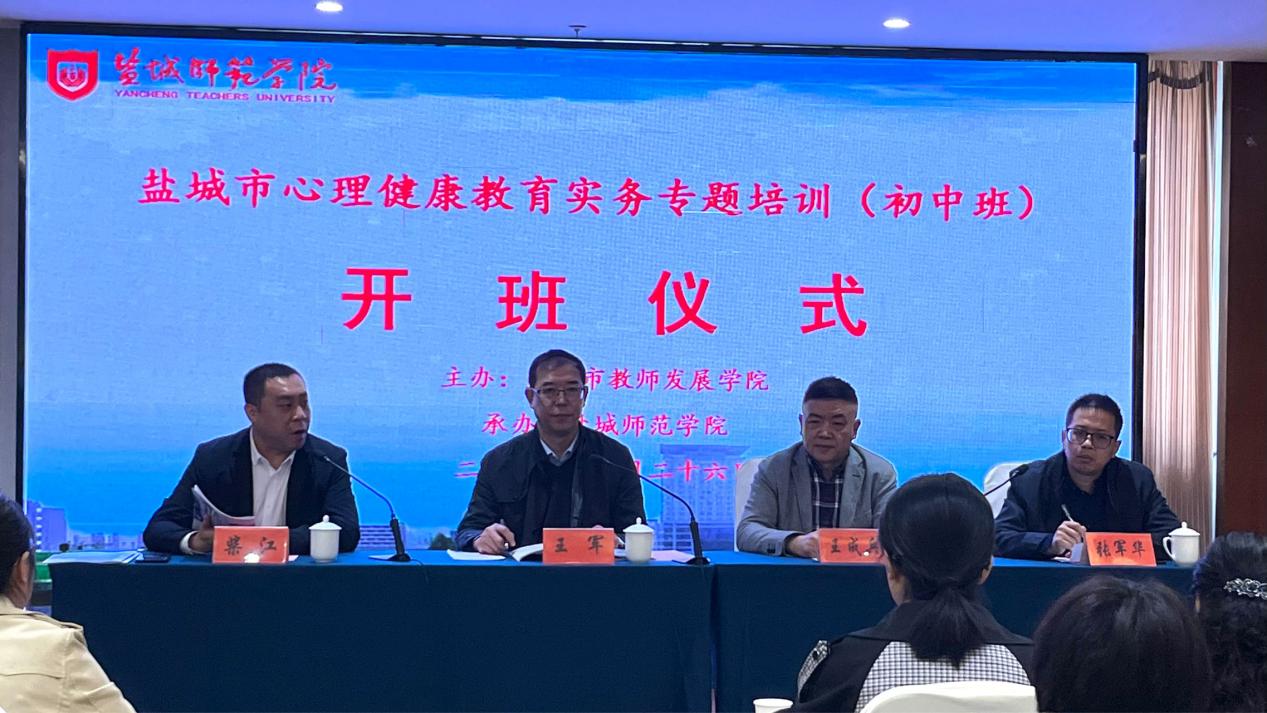 2023年4月26日上午,由盐城市教师发展中心主办、公司承办的盐城市心理健康教育实务专题培训初中学段班顺利开班。盐城市教师发展中心副经理王军,继续教育公司经理王成兵,伟德BV1946官网经理柴江出席开班典礼,伟德BV1946官网副经理张军华主持开班仪式。