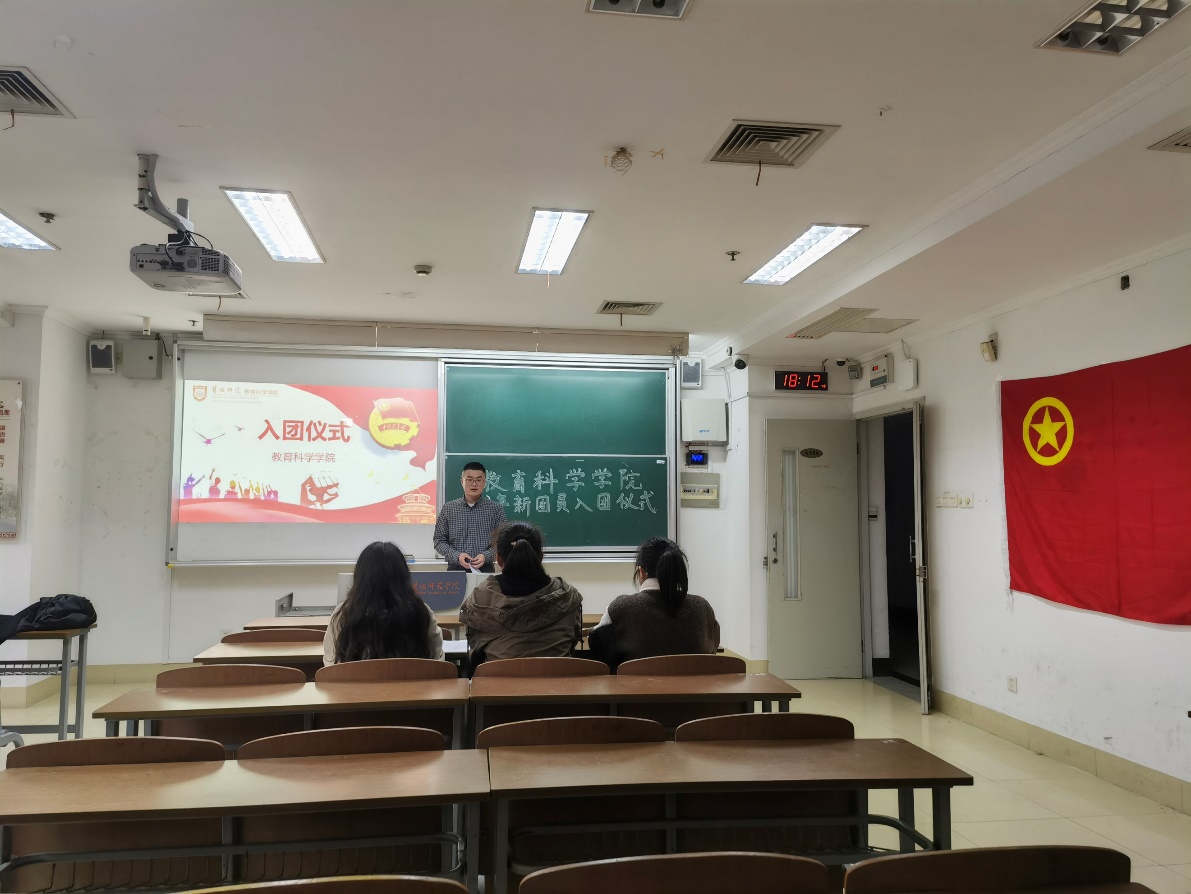 “青春展宏图,强国新征程”。在庄严嘹亮的国歌与团歌中,入团仪式缓缓拉开序幕。伟德BV1946官网团委负责老师陈志鹏说明举行入团仪式的意义后,宣读新团员的名单。陈志鹏老师为新团员颁发颁发团章、团员证和团徽,团徽佩戴在左胸前,这是共青团员的象征与荣耀。在陈志鹏老师的领誓下,全体新团员举起右拳、面对团旗庄严宣誓。最后,他对新团员们提出三点要求:“作为一名共青团员,一要坚定理想信念,二要锤炼过硬本领,三要提升道德修养。希望你们以自己的青春力量绘制出时代发展宏图,开拓出强国新征程。”
