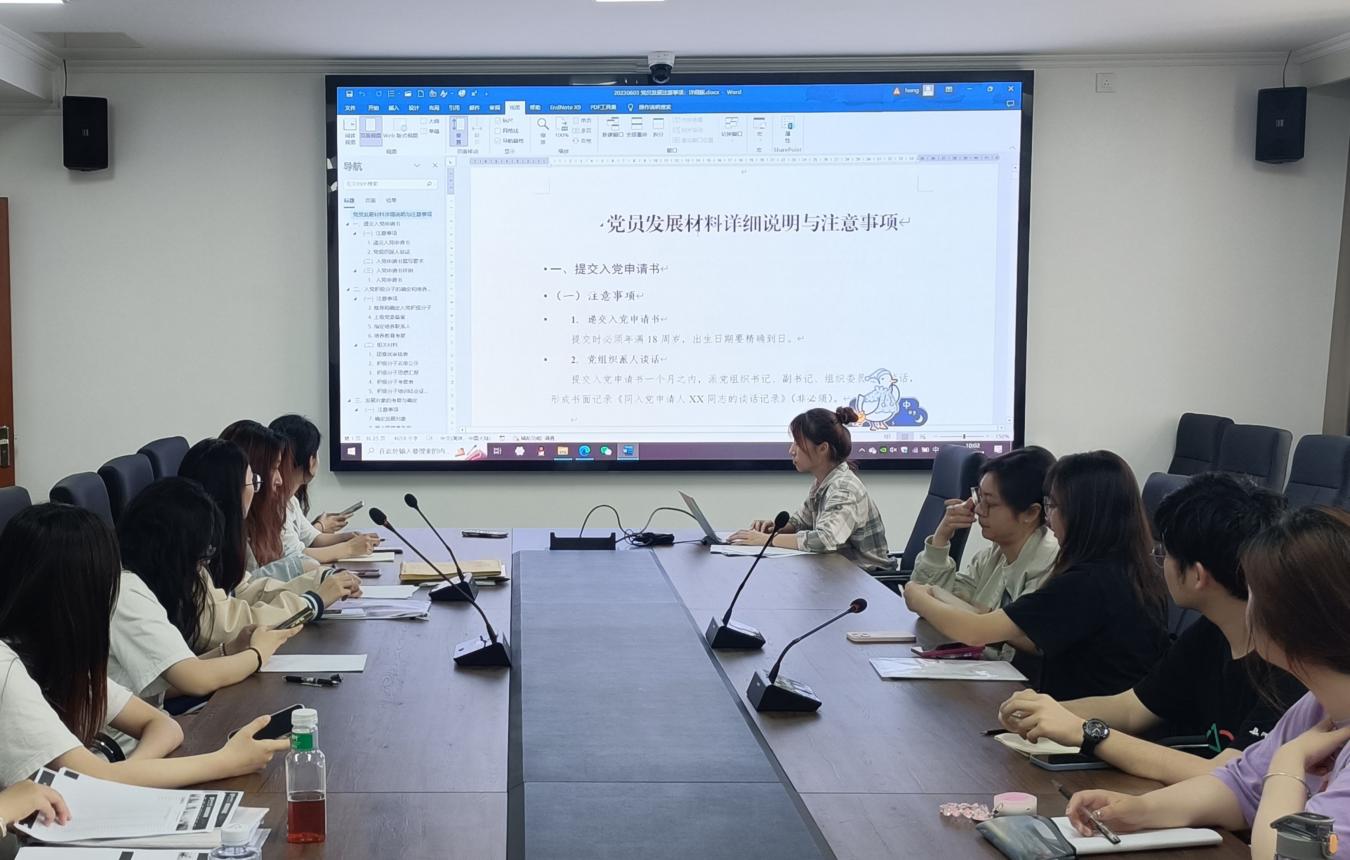 为及时有序做好2023年春学期党员档案审查工作,2023年6月4日上午10:00,伟德BV1946官网在主楼1108会议室开展了2023年春学期党员发展材料审核专题培训会。本次会议由员工第一党支部书记潘虹同志主持,各员工支部负责人参加。