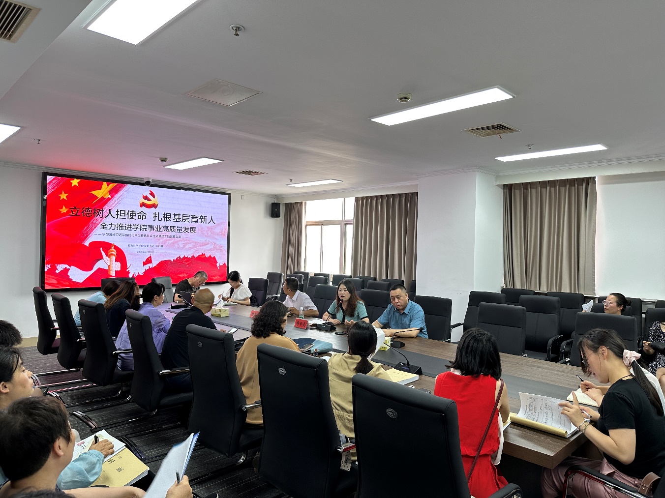 经理柴江勉励全体教师党员要以强化理论学习指导工作实践,以深化调查研究推动解决发展难题,把学习成效落实到立德树人根本任务和推进高质量发展的实际工作中去。