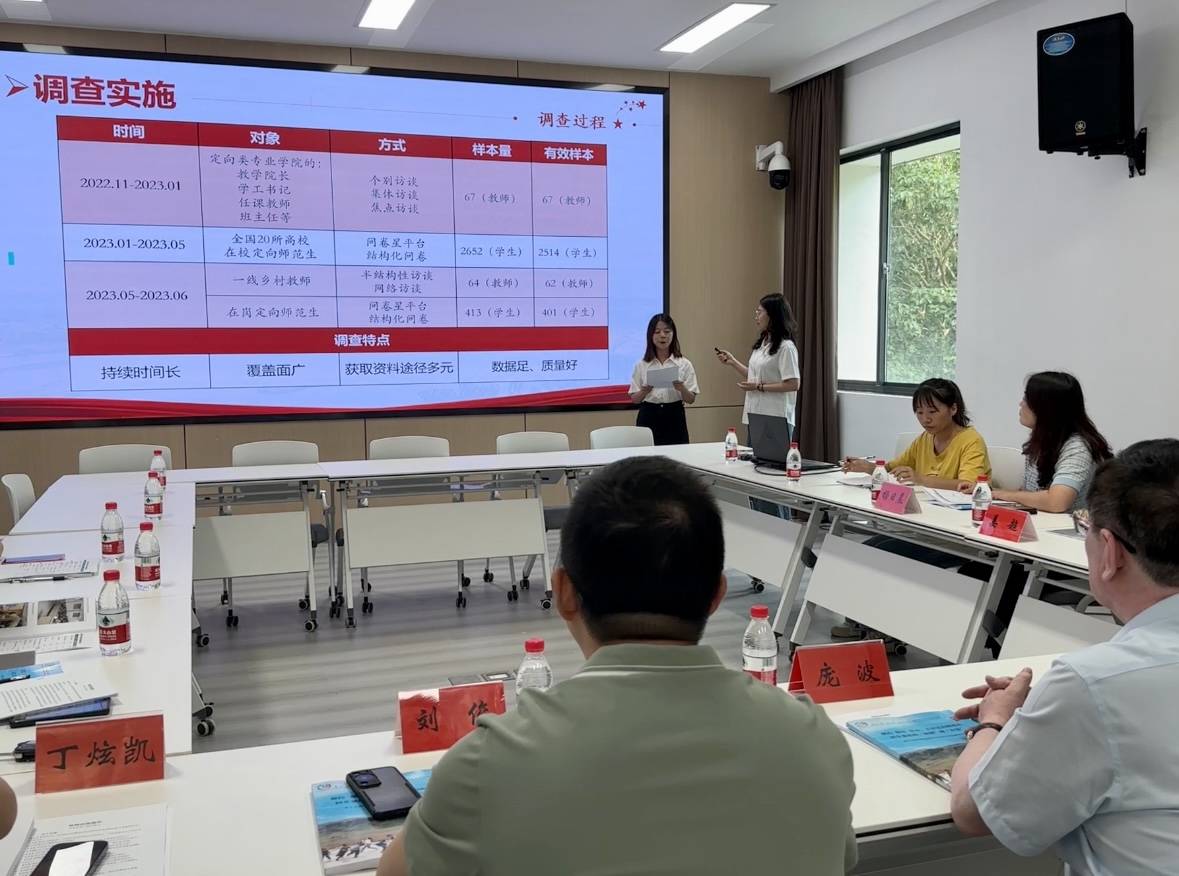 会上,员工就参赛作品《履约与使命:定向师范生回乡意愿的“他律”到“自觉”——基于全国20所高校2915名定向师范生的调查》开展模拟答辩。与会专家分别就项目内容和PPT的优化提出指导意见。