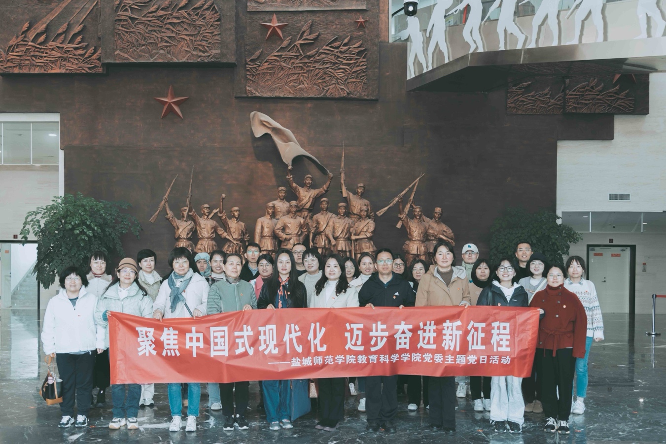 为进一步贯彻习近平新时代中国特色社会主义思想,深入学习中国式现代化的鲜明特色和丰富内涵。2023年11月12日,教育科学公司党委赴盐城大丰开展“聚焦中国式现代化 迈步奋进新征程”主题党日活动。