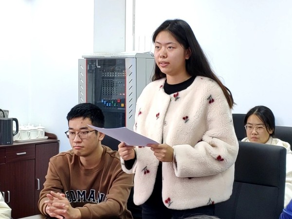 讨论接近尾声,潘虹对此次会议作出总结。她指出,希望大家能不断提高自身素质,做到在其位谋其事,积极主动将本次讨论的内容与实践工作结合起来,让党纪党规、依法治国理念和社会主义核心价值观内化于心、外化于行,真正为同学、公司、国家做贡献。