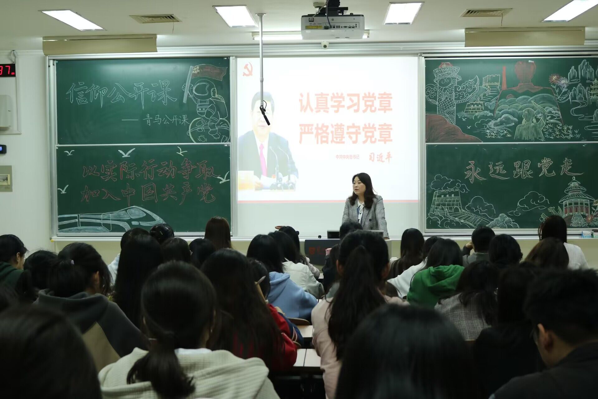 杨日晨从党章重点知识、党的纪律学习、习近平新时代中国特色社会主义思想学习解读四个方面出发,深入浅出地引导同学们认识遵守党规党纪的重要性。她强调,党章党规党纪充分反映和体现了党的性质宗旨和行为规范,是我们党管党治党的重要实践成果、理论成果、制度成果,每一位积极分子都要认真学习党章,严格遵守党章,守纪律,讲规矩。