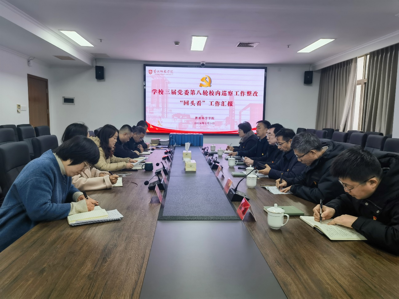 根据公司党委巡察工作统一部署,1月3日上午,校三届党委对教育科学公司党委开展第八轮校内巡察“回头看”。公司党委常委、副董事长庞波,公司党委巡察工作领导小组相关部门负责同志、公司党委巡察办负责同志出席会议,教育科学公司党政班子参加会议。本次会议由教育科学公司党委书记杨日晨主持。