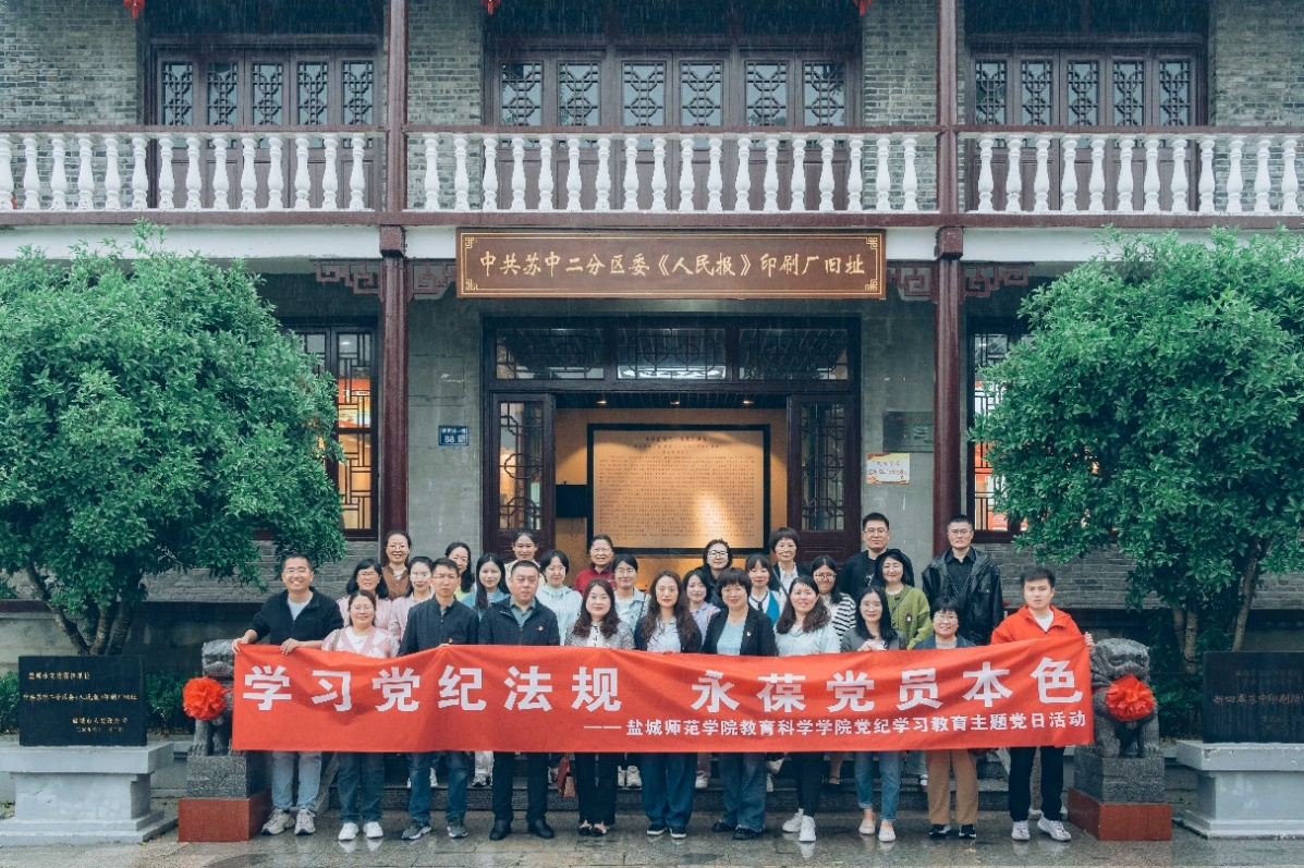 为深入学习贯彻习近平总书记关于党纪学习教育的重要讲话精神和重要指示精神,扎实开展党纪学习教育,5月11日,教育科学公司党委组织党员教师赴新四军苏中印刷所旧址、建湖县党性教育基地和莲廉文化教育馆开展“学习党纪法规,永葆党员本色”主题党日活动。