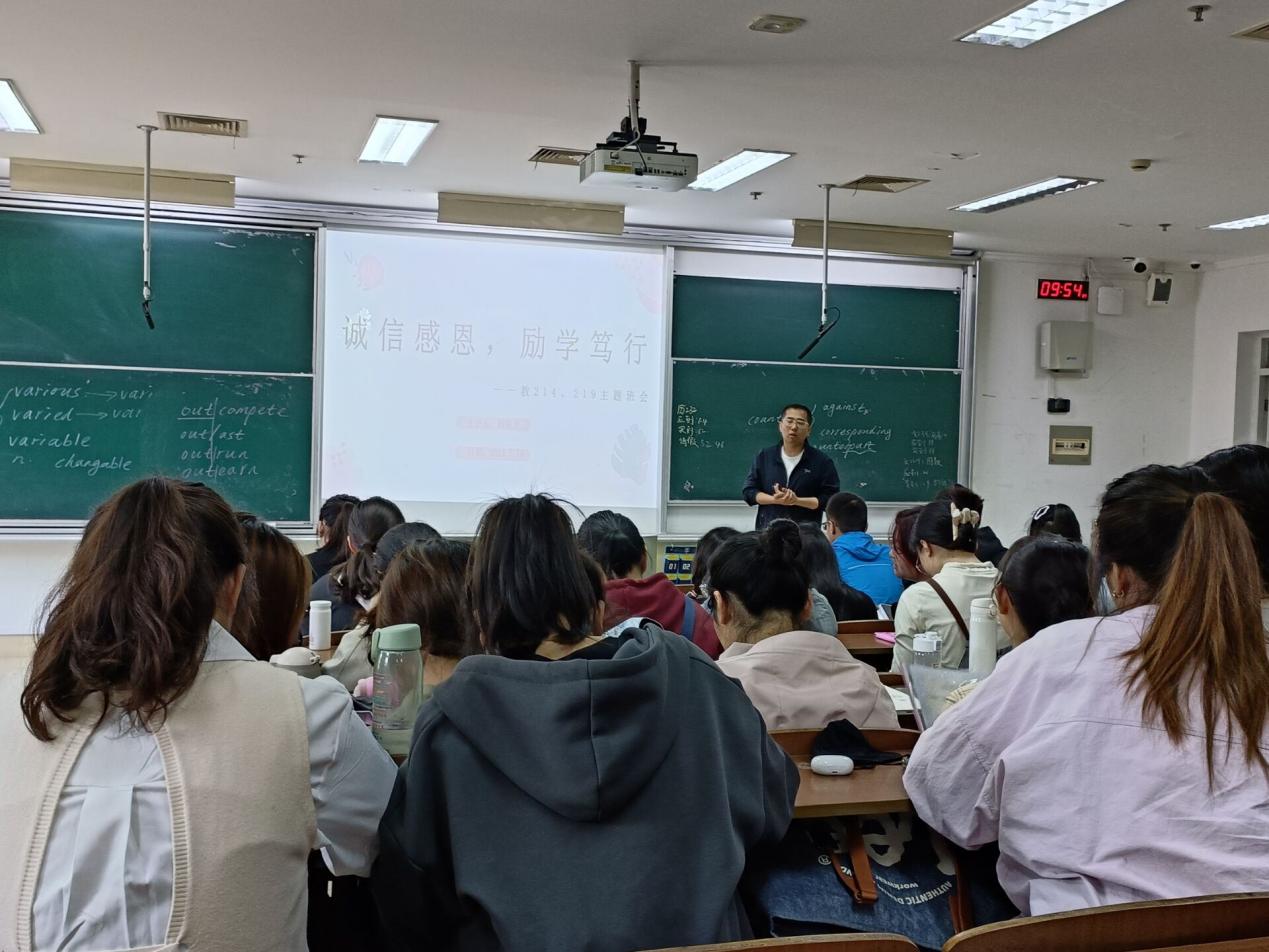 活动开展期间,各班班委积极配合,与老师协调时间,通过班会的形式,将“诚信感恩,励学笃行”的相关教育精神传递给员工,并拍照进行记录,最后完成班会记录和申报表等材料的整合。