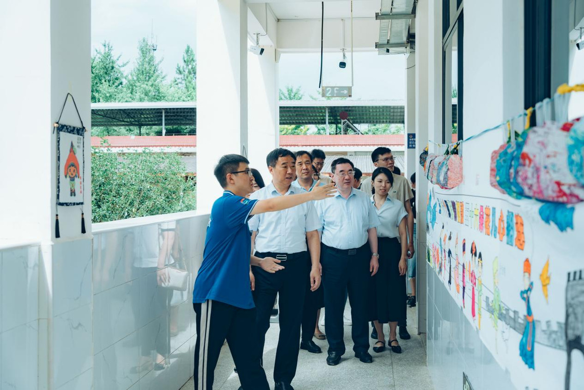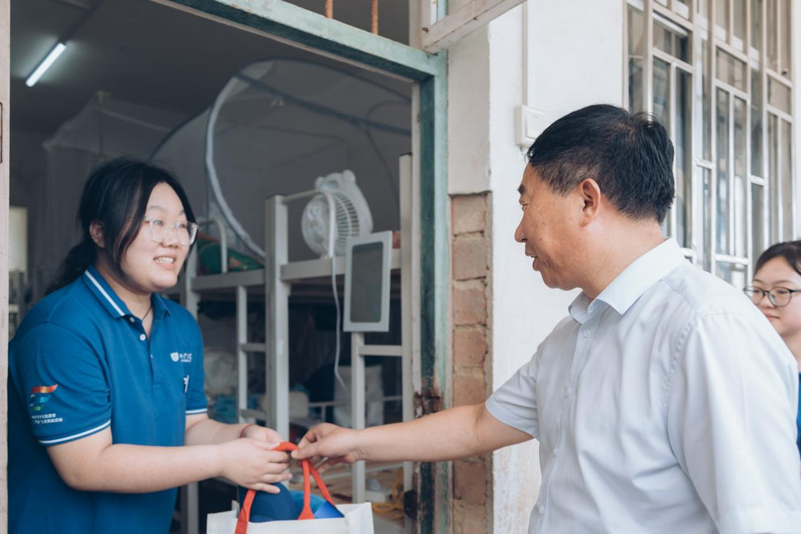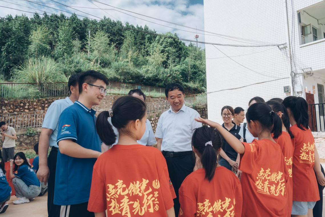 慰问伊始,公司党委书记戴斌荣详细了解实践队员的实践行程、支教情况、工作生活环境,慰问过程中听取了实践队长汇报,参观支教成员的教学成果,走进支教课堂观摩“学为人师心向党,行为示范支教行”主题党日活动。在了解实践团实践情况后,戴书记对伟德BV1946官网师生连续两年奔赴1500公里的广西灵川县海洋乡开展暑期社会实践表示了赞扬,对团队现阶段的成果给予充分肯定,鼓舞他们在教学实践中受教育、长才干、作贡献,磨炼品格和意志,真正贴近基层,贴近一线教育需求,用在校所学感恩回报社会。他指出,作为师范专业员工,更应该要用教育家精神厚植师范生教育情怀,以优秀的教育家榜样,树立“躬耕教坛、强国有我”的志向和抱负,为教育事业作出新的更大贡献。同时,校领导为实践队成员们带来了夏日清凉慰问品及防暑物资,并与指导老师和实践队队员进行亲切交谈,实践团成员们从实践任务、实践经历、实践感悟等方面交流了自己的暑期支教感想。