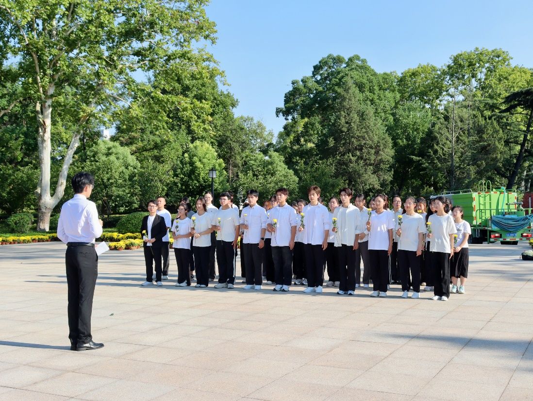 丰碑耸立,精神永存。在庄严肃穆的氛围中,全体师生怀着对英烈的无比敬仰,面向红旗,齐唱中华人民共和国国歌,表达对祖国的崇高敬意和深沉热爱。随后,全体人员向英雄纪念碑默哀一分钟,员工代表向革命英雄纪念碑敬献花篮,深切缅怀革命先烈的丰功伟绩,寄托对烈士们的无尽哀思和崇高敬意。
