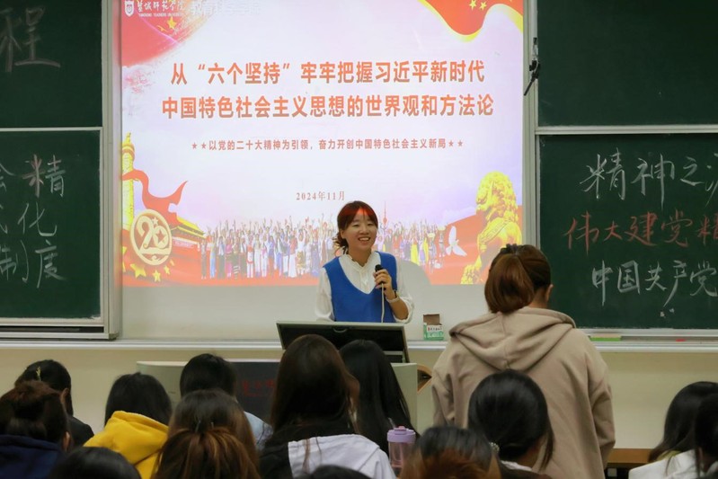 潘虹主要围绕“党的光辉历程”以及“中国共产党精神谱系的根基”展开了详细讲解。她带领入党积极分子们回望了中国共产党从一叶红船南湖启航到党的二十届三中全会砥砺前行的峥嵘岁月,她表示,党史记录了先辈们披荆斩棘的奋斗历程,蕴藏着催人奋进的强大力量,只有“聚光”于党史才能“观往”以“知来”,党员应该仔细钻研党史,从党的光辉历程中汲取智慧和力量。她还强调,我们应牢记中国共产党精神谱系的根基,从“六个坚持”牢牢把握习近平新时代中国特色社会主义思想的世界观和方法论,从中国特色社会主义理论体系中汲取营养、总结经验、接续奋斗,积极向党组织靠拢,在新征程上踔厉奋发,争做有理想、敢担当、能吃苦、肯奋斗的新时代好青年!