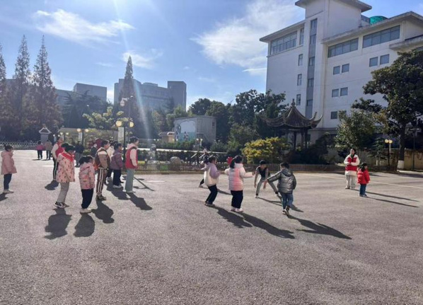 12月8日,志愿者们再次来到少儿图书馆,带领孩子们参与趣味游戏。孩子们在草地上围坐成一个大圈,清脆的童声响起“马兰花开,开几朵?”“小裁判”报出数字,孩子们匆忙而又有序地抱成一团,有的小脸涨得通红,有的因没找到伙伴急得直跺脚,还有的为成功组队而兴奋尖叫。活动以“丢手绢”结尾,孩子们互相追逐,笑声在草地上回荡。在游戏中,孩子们不仅增进了与同伴间的友谊,还明白了团结合作的重要性。
