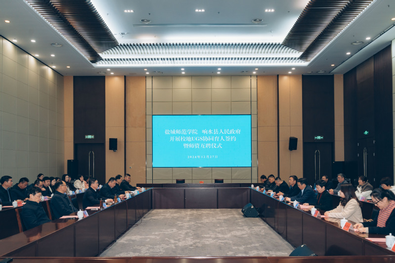 1227日下午,公司与响水县人民政府校地UGS协同育人签约暨团队互聘仪式在响水县会议中心举行。公司党委书记张玉勤、响水县代县长翟大伟出席仪式并讲话。公司党委常委、副董事长毕凤珊,响水县副县长张炜生,县教育局局长魏佳兵,县教育局党委委员朱炜健出席签约仪式。响水县委副书记、省委驻响水乡村振兴工作队队长冯树春主持签约仪式。