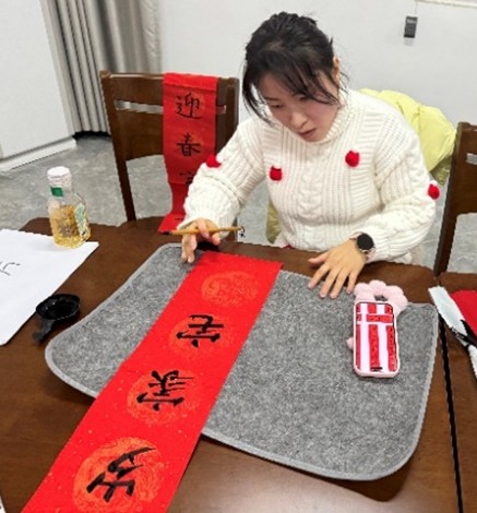 写春联环节更是充满了浓浓的年味和文化气息。老师们挥毫泼墨,笔走龙蛇,一幅幅寓意吉祥的春联跃然纸上。“祥龙辞旧岁,瑞蛇迎新春”等春联不仅书写出了对新年的美好祝愿,也饱含着对公司发展的深深期许。教职工们纷纷围在桌前,欣赏着书法之美,挑选着自己心仪的春联,现场弥漫着墨香与喜庆交织的独特韵味。
