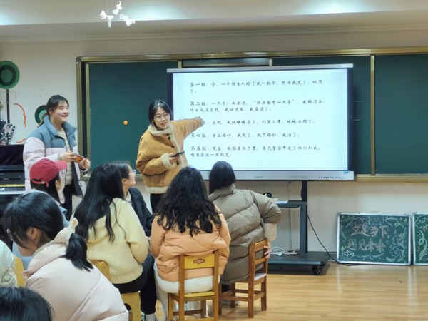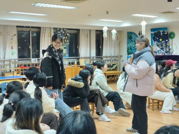 活动由“猜成语”、“海龟汤”和“谁是卧底”三个经典小游戏组成。在大家的欢声笑语中,“猜成语”环节率先开始。一轮又一轮的成语接连展开,难度不一的成语不断涌现。第一个成语“发奋图强”难住了首个接龙的同学,她不得不接受惩罚,选择了给大家做10个开合跳。在一轮轮的成语挑战中,“日薄西山”难度颇高令大家眉头紧锁,“一字千金”不易猜出让大家抓耳挠腮,也有“胸有成竹”“火树银花”“唇枪舌战”比较简单问题,被眼疾脑快的同学瞬间识破,轻松作答,现场顿时响起热烈的欢呼。这一环节中,同学们在挑战与欢笑中,深刻体会了积累知识、活学活用的重要性。