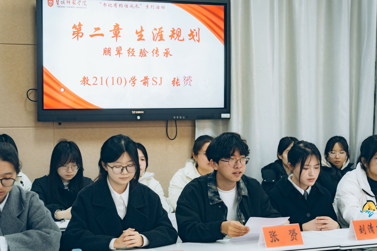 本次主题班会设置了班情汇报展示、生涯规划分享、时光信箱FLAG、校外导师结对等七个环节,内容丰富、形式多样。首先,班长王佳以《我们在盐师写下一首诗》简要汇报了班级在学风建设、实践活动、就业意愿等方面的班级建设情况。随后,员工代表张琳茗、游娅婷分别分享了支教实践和竞赛访学的成长经历,以同辈视角传递青春正能量。2025届毕业生代表张赟与刘清扬结合自身经历,分享了考研心路历程与职业规划经验。活动特别邀请了两位员工现场分享:盐城市亭湖区实验小学副董事长、盐城市名董事长培养对象、2013届员工王珊结合自身从教经历,深入剖析了师范专业多元化发展路径;盐城市第一小学高级教师、江苏省教学名师、2006届员工王蕾则分享了职业发展的真知灼见。两位员工为员工们勾勒了职业发展路径,鼓励大家拓宽视野、提升实践能力,认识教育专业的核心竞争力,为未来奠定基础。