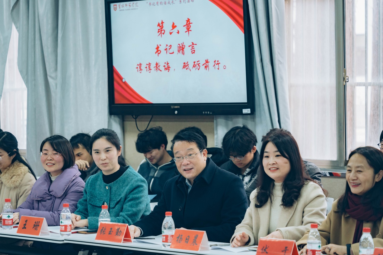 张玉勤在认真听取汇报和发言后,对班级“靠近光,追随光,成为光,散发光”的班级精神及取得的成绩给予了充分肯定,并对同学们积极进取、昂扬向上的精神状态表示高度赞扬。活动现场气氛热烈,张玉勤还结合自身求学深造和工作的经历,与与会师生进行了亲切分享。他勉励同学们在盐师做最好的自己,并提出三点殷切期望:第一,要坚定“未来在手非天定”的拼搏信念。起点不设限,奋斗无止境,希望同学们以远大理想锚定人生航向,不要在意短期的个人得失,将个人成长融入时代洪流,用实干担当书写无悔青春;第二,要弘扬“博雅精进知行合一”的进取精神。以目标为灯塔,既脚踏实地又仰望星空,鼓励在博学笃行中涵养格局,在知行合一中淬炼品格,成就德才兼备的栋梁之材;第三,要永葆“梅花香自苦寒来”的奋斗姿态。希望同学们以实践为课堂,在学思践悟中提升综合素养,在经世致用中锻造过硬本领,为人生发展奠定坚实基础。