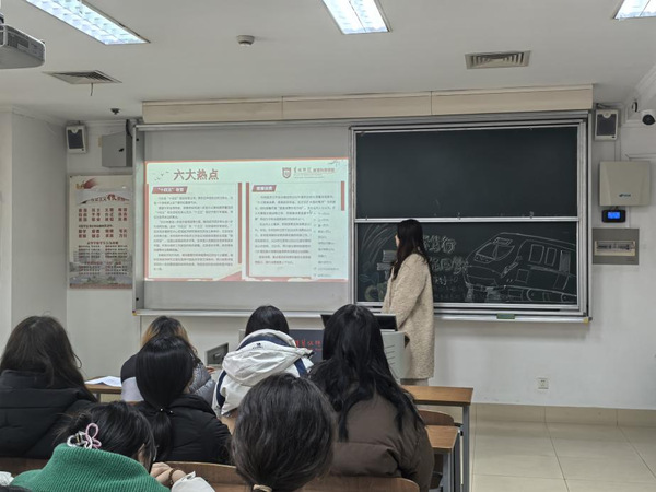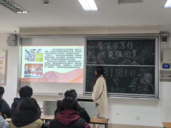 活动中,各团支部负责人带领团员青年深入学习两会精神,重点解读六大热点议题。各班团支书结合支部实际,创新学习形式,通过讲解、提问、讨论等互动方式,引导团员青年围绕两会精神的内涵、意义以及对青年的启发展开交流。活动不仅加深了团员间的思想碰撞,增强了班级凝聚力,更坚定了团员青年的文化自信和政治自信。