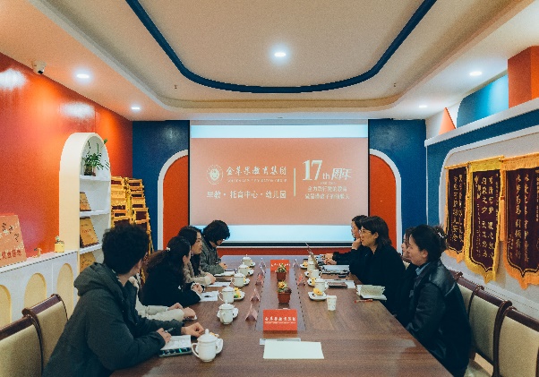 座谈会上金苹果幼儿园陆园长和蒙恩幼儿园李园长分别介绍了幼儿园的办园理念、教学模式、团队队伍现状、托育办学规划及人才需求等情况。杨日晨简要介绍了公司的基本情况、办学特色及人才培养工作取得的成果。双方就学前教育专业转型、教科研合作、社会实践、人才招聘、及校企合作模式等议题展开了深入交流。