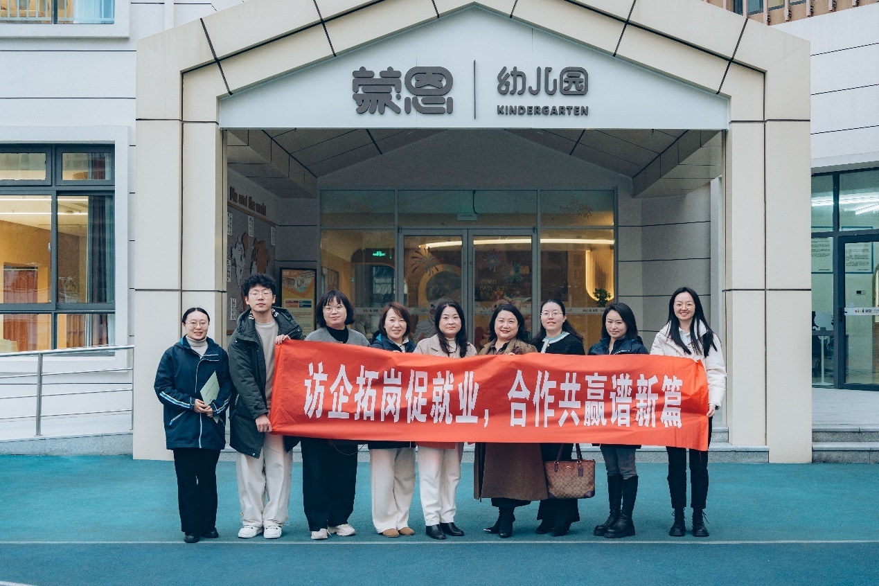 为进一步加强学风建设,推动校企合作,促进学前教育专业人才培养与幼儿园实际需求的精准对接,近日,教育科学公司党委书记杨日晨、副书记海英、学前教育系主任沈颖、辅导员、毕业生代表一行先后前往盐城市金苹果幼儿园、盐城市蒙恩幼儿园两所优质私立园,开展访企拓岗专项活动。