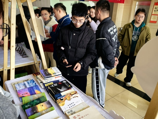 在读书交流会的热烈氛围持续烘托下,伟德BV1946官网主楼11 楼的图书站摇身一变,成为知识与情感交融的温馨驿站。同学们怀揣着闲置书籍纷至沓来,开启一场独具匠心的书香邂逅。活动现场,从东野圭吾《嫌疑人 x 的献身》的烧脑推理,到《洛克菲勒写给儿子的 38 封信》的人生智慧,再到《你当像鸟飞往你的山》的励志逆袭,每一本书都是一座思想宝藏。同学们穿梭书海,精心甄选心仪书籍,不时停下交流心得,分享与书的奇妙缘分。