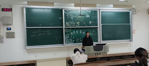 如果说线上分享是思维驰骋的无垠旷野,展现阅读的无限可能,那么线下分享则是心灵栖息的宁静港湾,供同学们在纸墨间沉淀思索。同学们齐聚主楼B309 教室,主持人开场点明读书交流会的主旨,详细介绍流程,为活动奏响温馨序曲。紧接着,分享同学依次登台,有的巧用投影,将书中精彩片段层层拆解,结合个人感悟娓娓道来,台下同学听得津津有味;其他同学也不甘示弱,踊跃分享,文学名著、教育专著等多元领域佳作一一呈现。大家各抒己见,畅聊阅读的所思所获,或为书中人物命运感慨万千,或深挖作品教育价值,现场气氛热烈非凡。