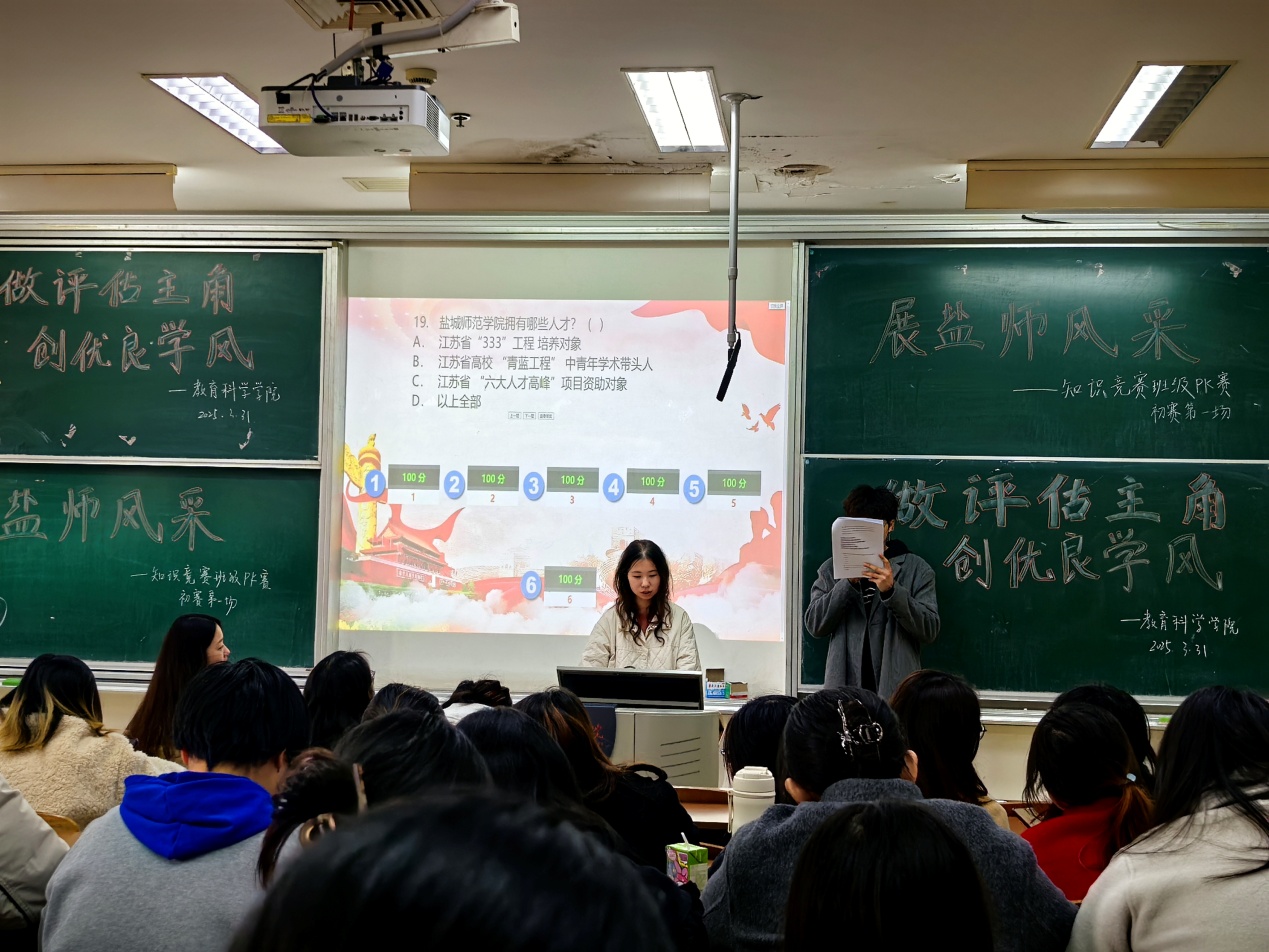 为深化学风建设,夯实“一站式”员工社区育人根基,3月31日至4月10日,伟德BV1946官网在通榆校区教室举办“做评估主角 创优良学风 展盐师风采”班级知识竞赛初赛。本次活动覆盖全院大一至大三员工,1099名学子以班级为单位组队参赛,在知识比拼中彰显盐师学子的青春活力与责任担当。