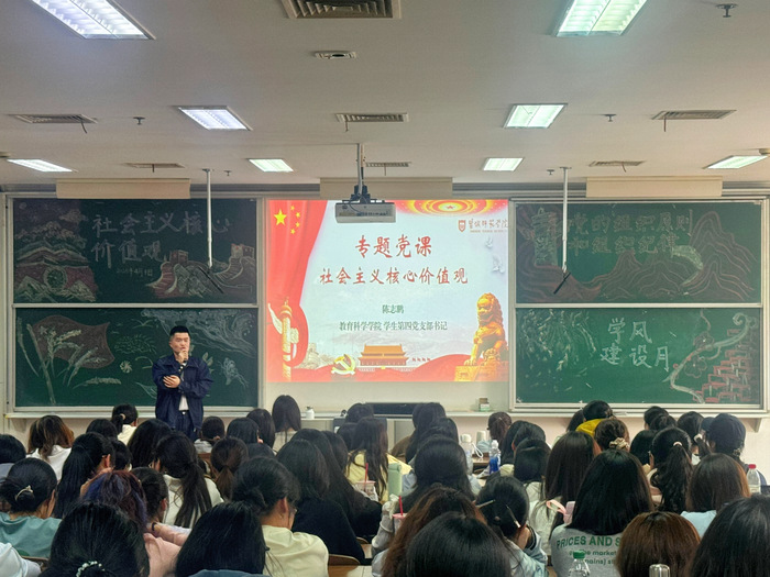 陈志鹏围绕国家、社会和公民三个层面,深刻解读了社会主义核心价值观的内涵,并列举实例详细讲解了社会主义核心价值观的目标追求、社会精神、价值导向、行为标准等。他号召大家要积极践行社会主义核心价值观,掌握其基本内容和要求,悟深悟透,以学促做。他还强调,入党积极分子要发挥模范带头作用,深入理解社会主义核心价值观的理论逻辑和实践要求,做到内化于心,外化于行。