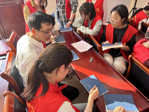 活动中,志愿者们协助开展精彩的古籍知识讲座,深入剖析古籍修复的历史、流程、纸张种类,展望其未来发展,并分享文创产品开发思路。讲座后,志愿者们参与古籍装帧亲手完成一本本线装古籍,成就感十足。与此同时,志愿者们积极参与古籍修复技法交流,近距离观察修复工具与流程,与修复师热烈交流。