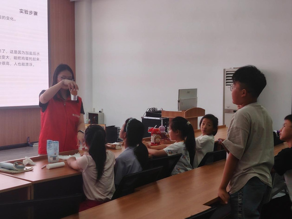 随后开展的“《有趣的盐》”科普实验,通过“消失的盐”溶解实验、“鸡蛋浮起来”等趣味小实验,让孩子们在动手操作中学习溶解、浮力等科学原理,感受生活中的科学奥秘。