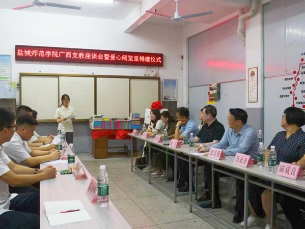 为深入贯彻落实教育帮扶政策,助力乡村教育振兴,充分发挥高校服务社会职能,8月1日上午,伟德BV1946官网广西支教座谈会暨爱心阅览室捐建仪式在兴安县高尚镇中心小学举行。伟德BV1946官网公司党委书记张玉勤,盐城师范公司党委常委、副董事长庞波出席仪式,仪式由兴安县团委副书记邓昊主持。