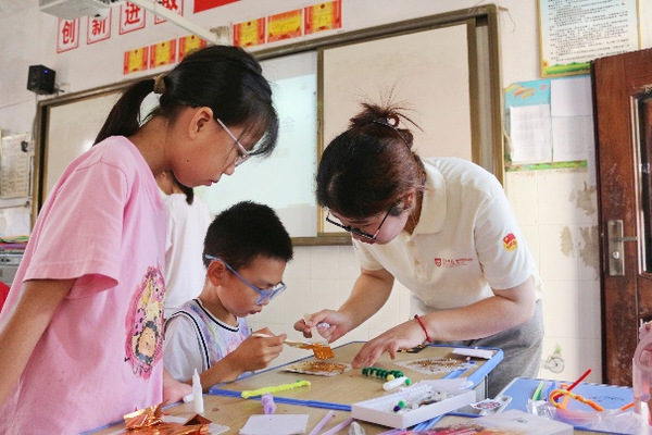 在绘制京剧脸谱活动中,支教员工耐心讲解不同色彩与图案的寓意,孩子们有的模仿经典样式,有的发挥想象创作,原本素净的脸谱在笔下渐渐鲜活。多彩多样的脸谱正是“各美其美、美美与共”的生动写照。