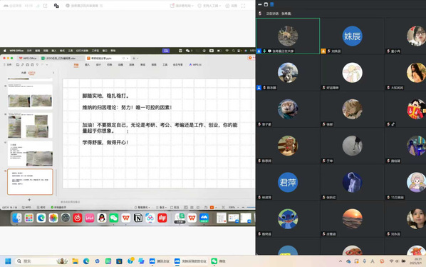 张希晨将自身所有的经验与方法倾囊相授。她以自身的经历为证明,鼓励学弟学妹脚踏实地,稳扎稳打。她引用维纳的归因理论:努力!唯一的可控因素!以此来强调人定胜天,同时又告知大家:不要限定自己的未来,你的能力超乎自己的想象。梦想不会辜负一个青春的灵魂,过往的汗水与努力终能得到兑现。以愿景为舵,以行动为桨,祝大家学有所成,自信开启老员工活。