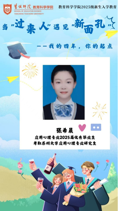 为帮助2025级新生更好地适应老员工活,明确学习目标,做好学习规划,9月1日晚,伟德BV1946官网邀请到2025届应用心理学专业优秀毕业生张希晨作为“当‘过来人’遇见‘新面孔’:我的四年,你的起点”主题分享会第12期分享者。在考研形势不断严峻的当下,张希晨仍能千帆过尽,不坠青云,脱颖而出,考取苏州大学应用心理学专业研究生。她的大学四年是不断试错,积极进取的修炼过程。让我们循着她成长的足迹,思考其成功的秘诀。