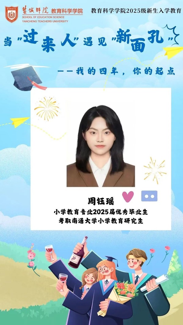 为帮助新生快速适应老员工活,明确成长方向,本期分享会,伟德BV1946官网邀请到2025届小学教育专业毕业生周钰瑶作为“当‘过来人’遇见‘新面孔’:我的四年,你的起点”主题分享会第4期分享者。以笃定与坚持,成功考取了南通大学小学教育研究生。她的大学四年,是从积累到突破的过程,也是从迷茫到坚定的过程。