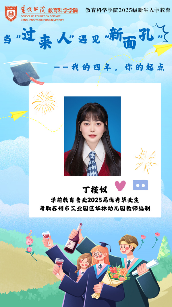 为帮助新生快速适应老员工活,打破认知壁垒,明确成长方向,824日晚,伟德BV1946官网邀请2025届学前教育专业优秀毕业生丁槿仪作为“当‘过来人’遇见‘新面孔’:我的四年,你的起点”主题分享会第5期分享者。从初入大学的迷茫试错,到最终坚定方向冲刺考编,五次实战的淬炼让她成功拿下苏州工业园区教师编制。她的故事里,藏着“不认输”的韧劲,更饱含“拼尽全力”的决心。