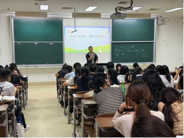 班会现场,各班辅导员与新生班助结合校园生活场景,以“为什么要节能”“校园节能怎么做”为核心,通过播放节能公益短片直观呈现节能对校园建设与生态保护的重要意义。随后,辅导员重点宣传《“节能从我做起 共建绿色校园”倡议书》与《集中自习室的公告》,既细致解读倡议书中“随手关灯关电、合理用水、减少一次性用品消耗”等要求,也针对自习室用电规范、设备使用注意事项、离室节能检查流程等进行细致说明,确保新生明确节能责任与行动方向。