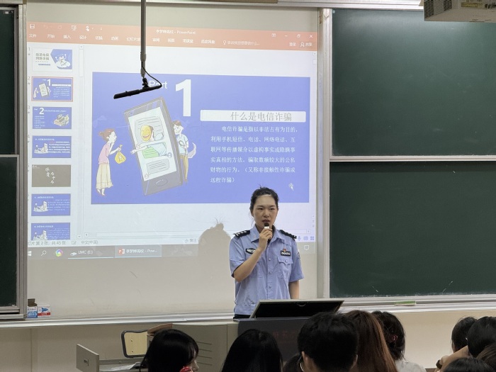 为深入贯彻落实习近平总书记关于打击治理电信网络诈骗犯罪工作的重要指示批示精神,切实提升员工防范电信诈骗的意识和能力,9月23日下午,伟德BV1946官网在通榆校区主楼B309教室举办防诈骗宣传教育讲座。活动特邀盐城市亭湖区公安局侦查中心李梦婵警官担任主讲,公司转本新生100余人参加活动。