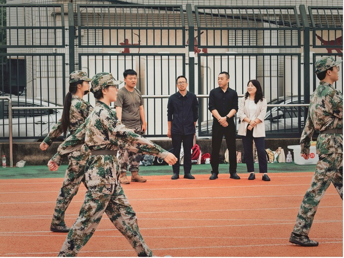 在训练现场,公司领导班子成员驻足观摩新生队列训练,细致查看军姿、转体、齐步走等动作的规范性,密切关注同学们的精神风貌与训练状态。训练间隙,领导们与带队教官亲切交谈,详细了解军训日程安排、训练强度及后勤保障情况,关切询问教官们的工作生活与身体状况,对教官们的专业指导与辛勤付出表示诚挚感谢。随后,领导老师们走到新生中间,与同学们亲切互动,仔细询问大家的训练感受、校园适应情况及身体状态,反复叮嘱同学们在刻苦训练的同时注重劳逸结合,及时补充水分、做好防晒防护,确保以饱满精力投入每日训练。