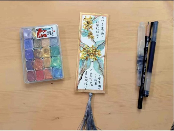 与此同时,传统文化教育同样在温馨氛围中深入人心。在“桂香迎双节,巧手寄情深”手作活动中,同学们亲手制作桂香书签与特色月饼,在揉面包馅、涂绘装饰的过程中体验民俗技艺的乐趣。指尖劳作间,书签墨香与桂香交织,月饼奶香与笑声相伴,创意作品不仅承载着节日仪式感,更寄托了对家庭的思念与对美好愿景。